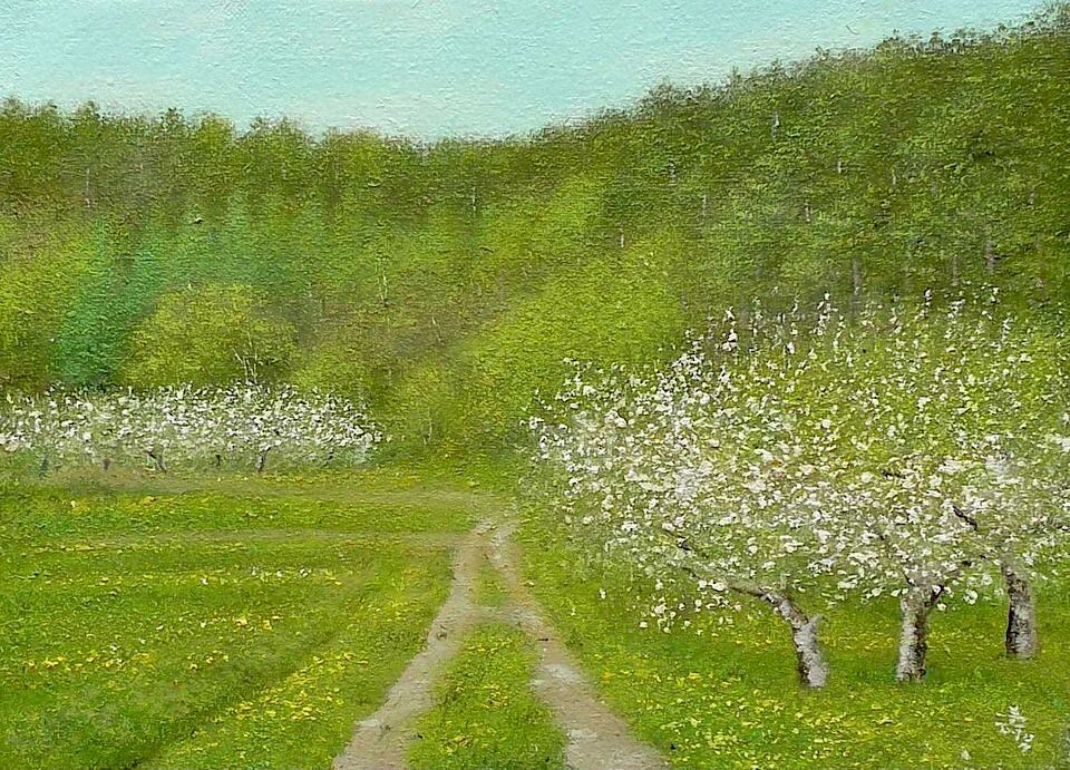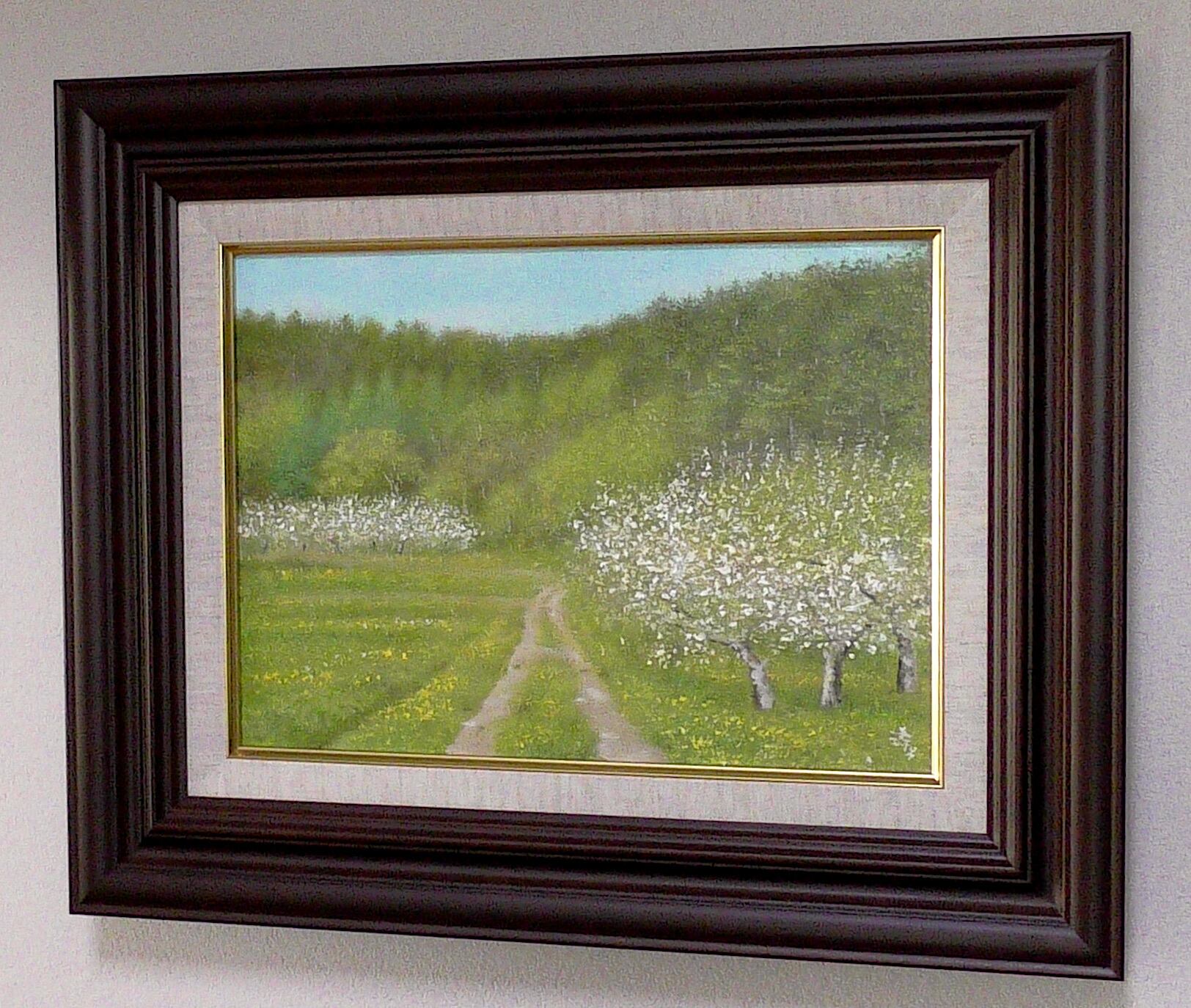 この「林檎の花 F4 油彩(額入)」の美しさは、見た瞬間にあなたの心を鷲掴みにすること間違いなしです。美しく生命力にあふれた花々の華やかさに、心奪われることでしょう。